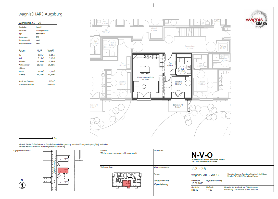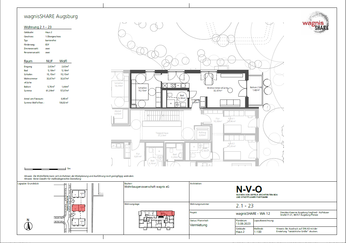 Im Sheridanpark im Westen Augsburgs wächst unser neuntes Wohnprojekt, wagnisSHARE. Bezug ist ab April 26. Auf dem Baufeld 12 entstehen in einer nachhaltigen und ökologischen Bauweise 46 Wohnungen in 3 Häusern. Ein Mix aus freifinanzierten und geförderten Wohnungen soll für eine bunte, inklusive und generationenübergreifende Nachbarschaft sorgen. Gemeinschaftsflächen wie Gästeapartment, Werkstatt und Dachterrassen entlasten die eigene Wohnung und bieten Raum für Begegnung. In enger Kooperation mit unseren Nachbarn wollen wir im Süden unseres Grundstücks einen Platz schaffen, der sich dem Quartier öffnet und Kontakt und Kommunikation ermöglicht.
