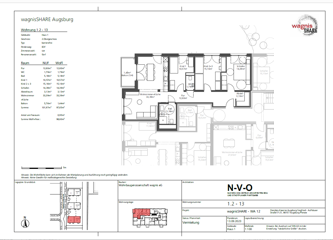 Wohnberechtigungsschein vom Amt für Wohnbauförderung und Wohnen in Augsburg erforderlich, Belegung mit 5 Personen |