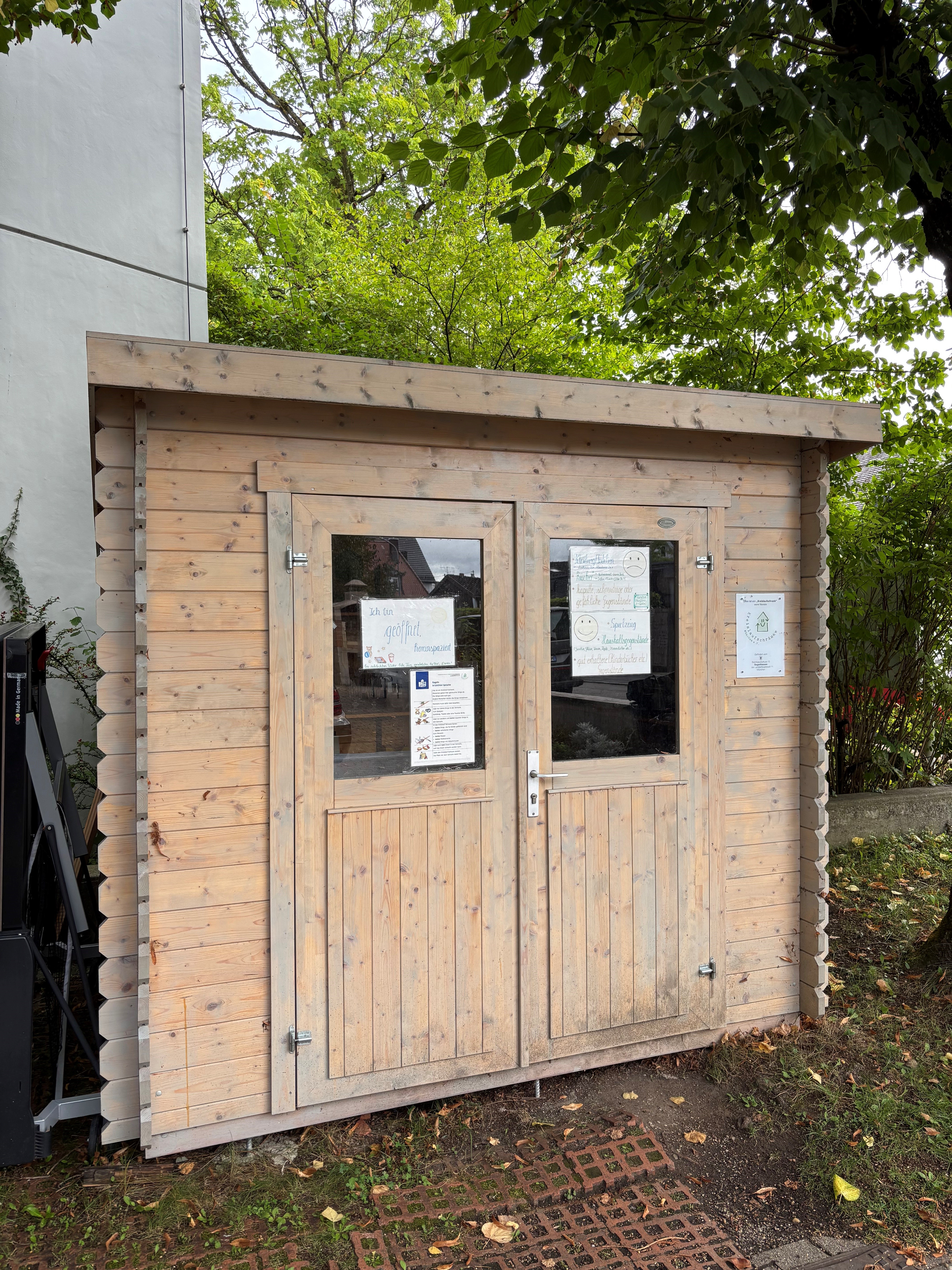 Eine Salatschleuder, Tassen, Weingläser und ein Puzzle für Kinder: viele Dinge warten im „Imma g’schenkt Häusl“ an der Immanuelkirche in Bogenhausen auf neue Besitzer*innen. Das Holzhäuschen gehört zu insgesamt 16 Kreislaufschränken, die der Verein Kreislaufschränke München e.V. betreibt. Anfang August konnte er sein fünfjähriges Bestehen feiern.