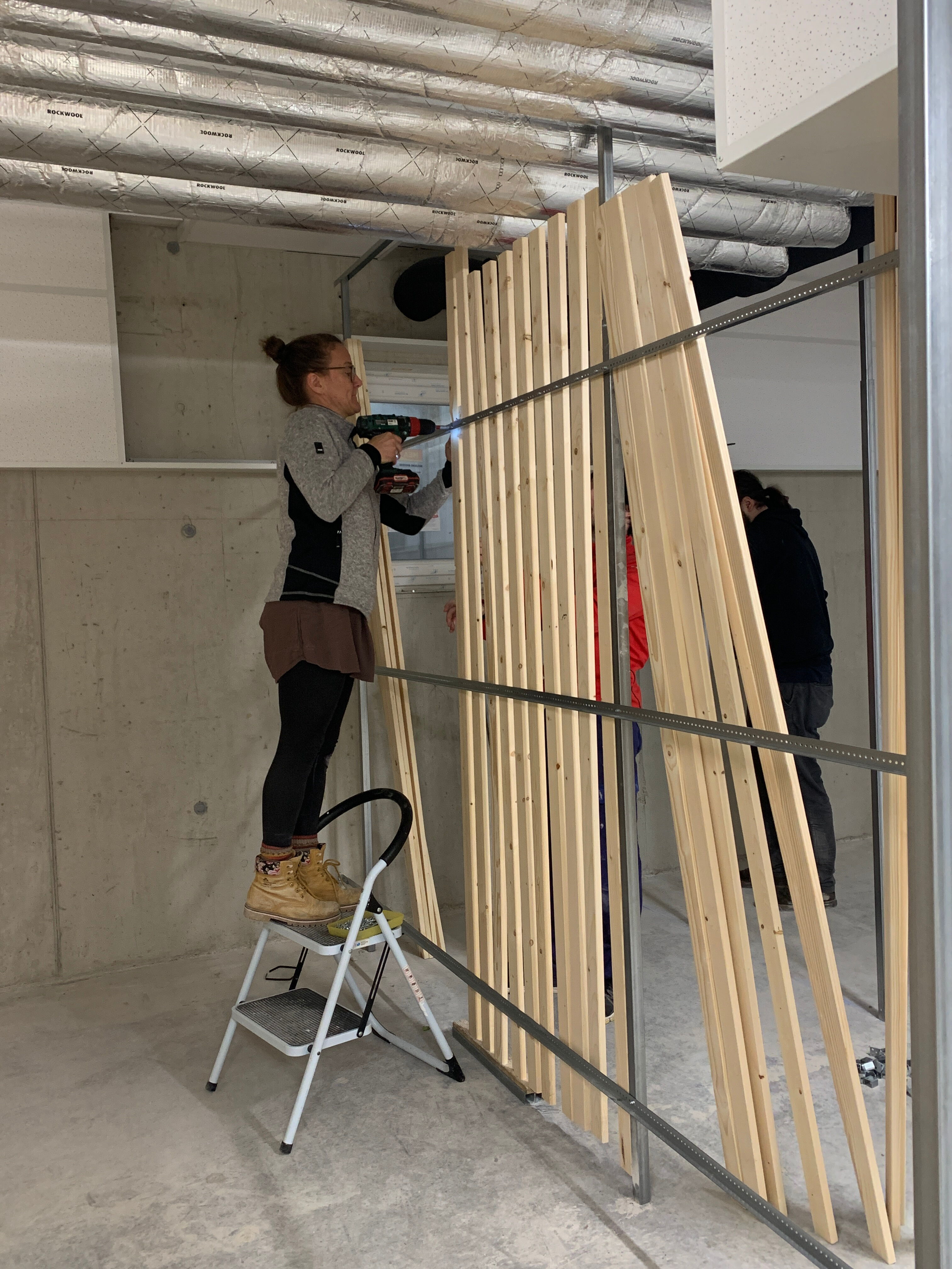 Flexen, bohren, messen, schrauben, quatschen, lachen und Zukunftspläne schmieden: Unsere Augsburger Baugruppe baut gerade in Eigenleistung ihre Kellerabteile. Nach zwei Tagen gemeinsamen Arbeitens stehen schon 1/3 der Kellerabteile. Applaus!