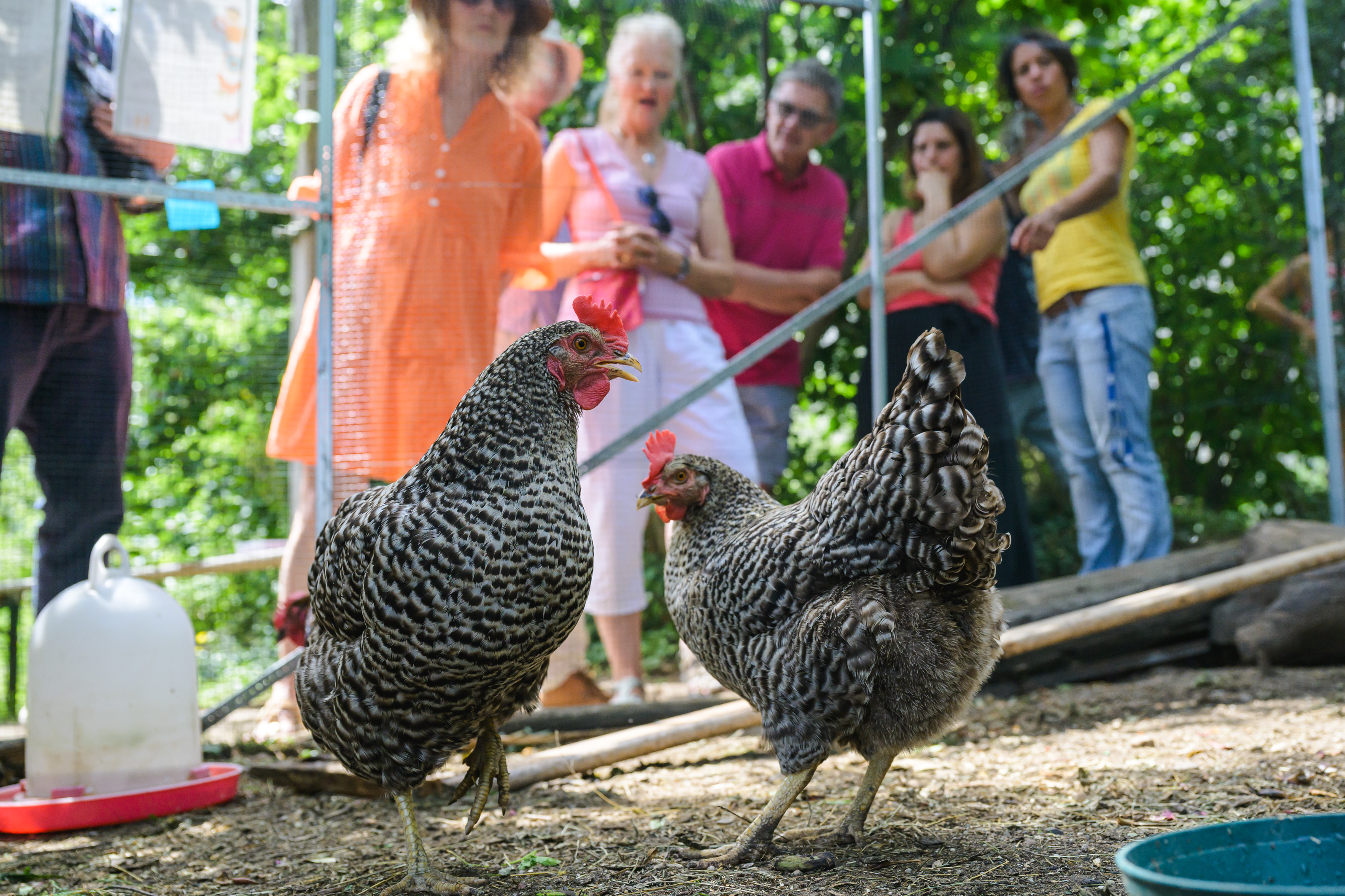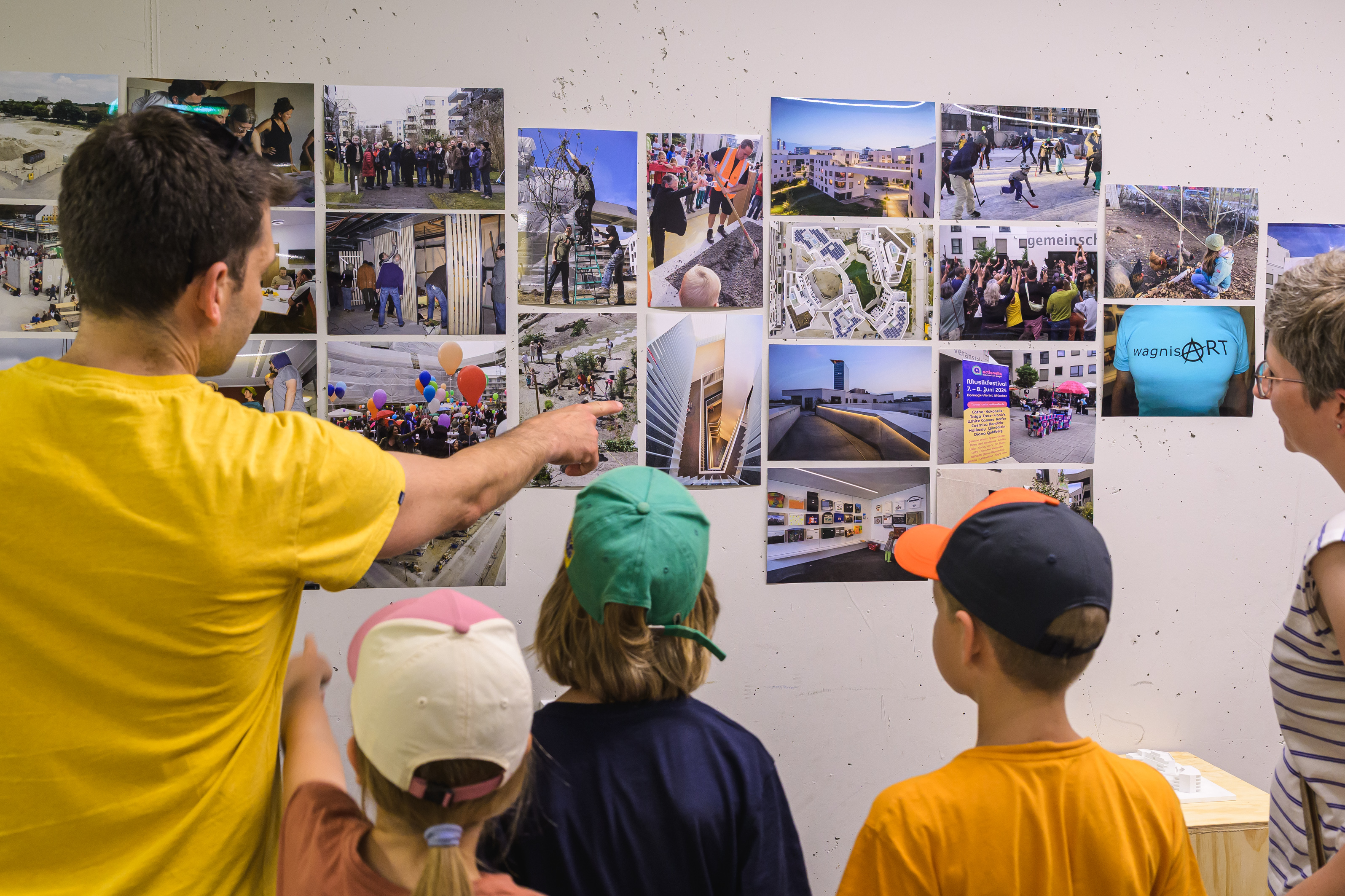Nur schade, dass man sich nicht teilen konnte und deshalb auf das eine oder andere Programm-Highlight verzichten musste. Auf der Musikbühne wechselten sich die Bands ab, außerdem stellten Vertreter*innen die insgesamt zehn wagnis-Projekte vor. Beim Erzählcafé, das Andrea Kästle moderierte, beim Lichtbildervortrag von wagnis1-Bewohner Theo Richter und bei den Foto-Ausstellungen zu den einzelnen Projekten wurden viele Erinnerungen an die Anfänge von wagnis wach. Sehr nachgefragt waren die Führungen zum Hühnerstall, bei denen die Kinder stolz ihre Schützlinge Lady Gaga, Hanni und Nanni, Karla die Große und Kleo vorstellten. Dazu ließen sich die Besucher*innen das krosse Brot aus dem Brotbackofen und die frischgebackenen Waffeln schmecken. Dazwischen lohnte es sich, im Fotostudio von Frank Schroth im Großen Gemeinschaftsraum vorbeizuschauen und bei der Porträtaktion „faces of wagnis“ mitzumachen.
