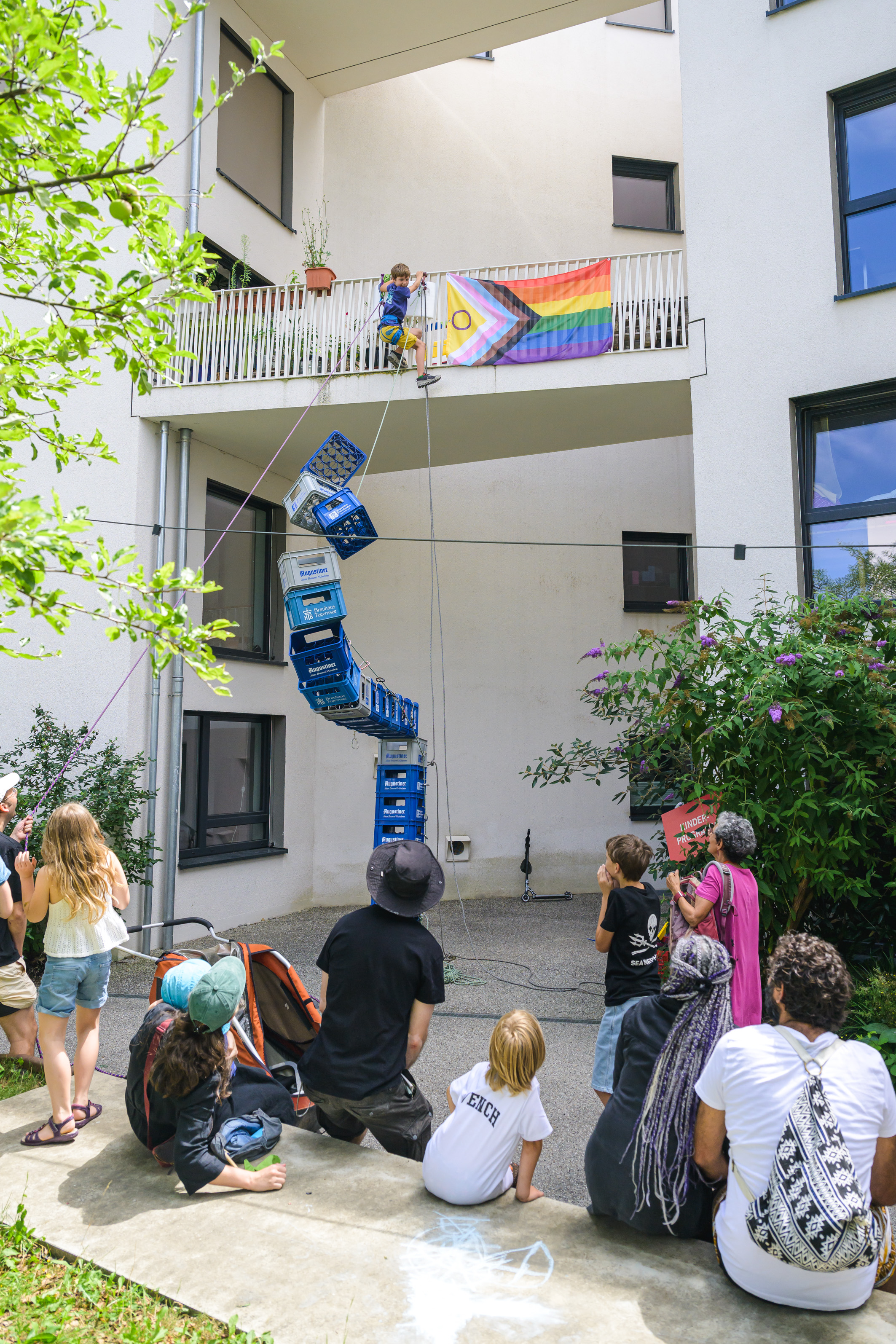 Nicht nur die Erwachsenen hatten die Qual der Wahl bei der großen Vielfalt an Angeboten, auch die Kinder waren sehr beschäftigt. Beim Bierkistenklettern kamen die Besten bis hoch zur Brücke, andere erprobten ihre Fähigkeiten beim Jonglieren aus, plantschten an der Wasserrutsche und ließen sich schminken.