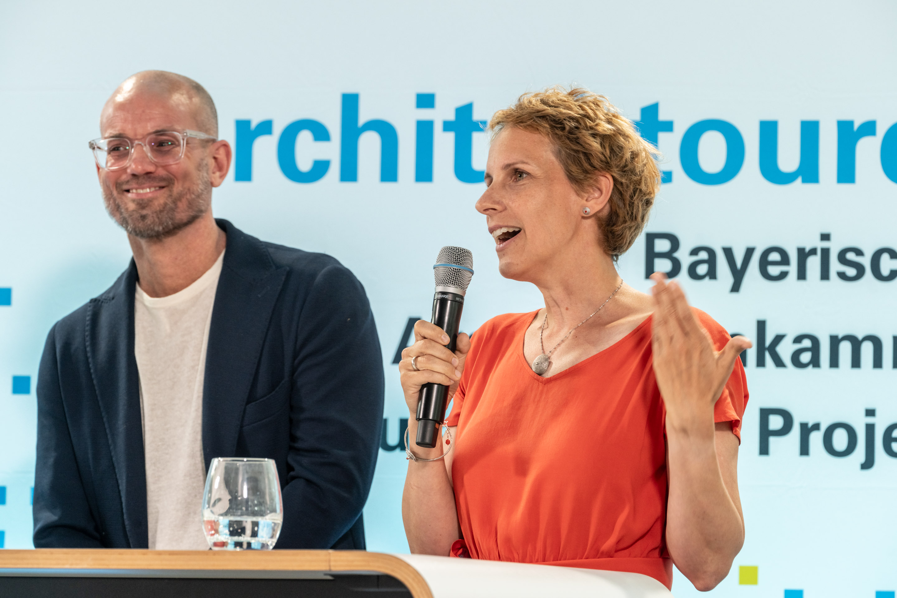Eröffnet wurden die Architektouren am vergangenen Montag mit einer Ausstellung im bayerischen Bauministerium, bei der 48 Projekte aus allen bayerischen Regierungsbezirken präsentiert wurden. „Wir zeigen hier viele gut gelungene Projekte, auf die wir stolz sind“, sagte Bauminister Christian Bernreiter. In einem Werkgespräch stellten wagnis-Vorständin Rut Gollan und Jan Fischer vom Architekturbüro AllesWirdGut das achte wagnis-Projekt vor. Jan Fischer berichtete über die Herausforderungen, ein gemeinschaftliches Projekt auf einer grünen Wiese zu entwickeln, das auch einen wichtigen Baustein fürs Quartier darstellen soll. Rut Gollan unterstrich die große Bedeutung der Wohnraumförderung, damit genossenschaftliches Bauen realisiert werden kann.