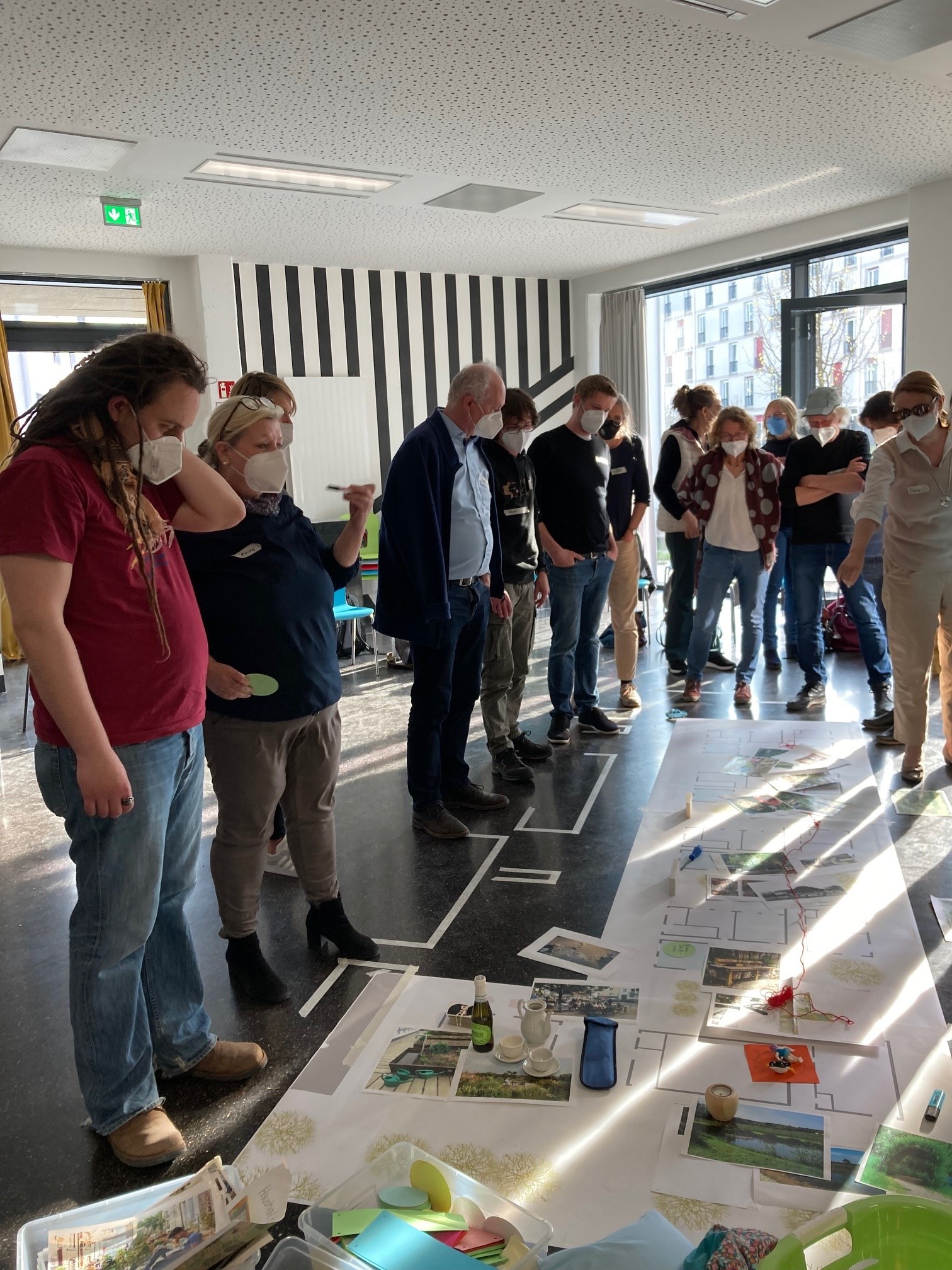 Die Baugruppe mit ca. 35 Haushalten ist bunt gemischt und doch regional fest verankert: eine Freisinger Graswurzelbewegung hat sich auf der Basis gemeinsamer Werte gefunden, um Lebensräume weiterzudenken. In den vergangenen Jahren haben sich die Mitglieder in Plenen und Workshops getroffen und beispielsweise zur Balance zwischen privaten Rückzugsräumen und Öffentlichkeit gearbeitet und andere Projekte besichtigt. Während der Umsetzung wird sich das Engagement fortsetzen bis hin zu Eigenleistung am Bau, sodass lange vor dem Bezug intakte Hausgemeinschaften und ein tragfähiges Miteinander entstehen.