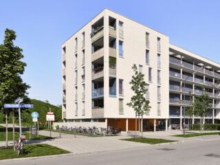Umfang | 45 Wohnungen, Gemeinschaftsraum, Gästeapartment, Gemeinschaftsdachterrasse, Einzel- und Gemeinschaftsgärten