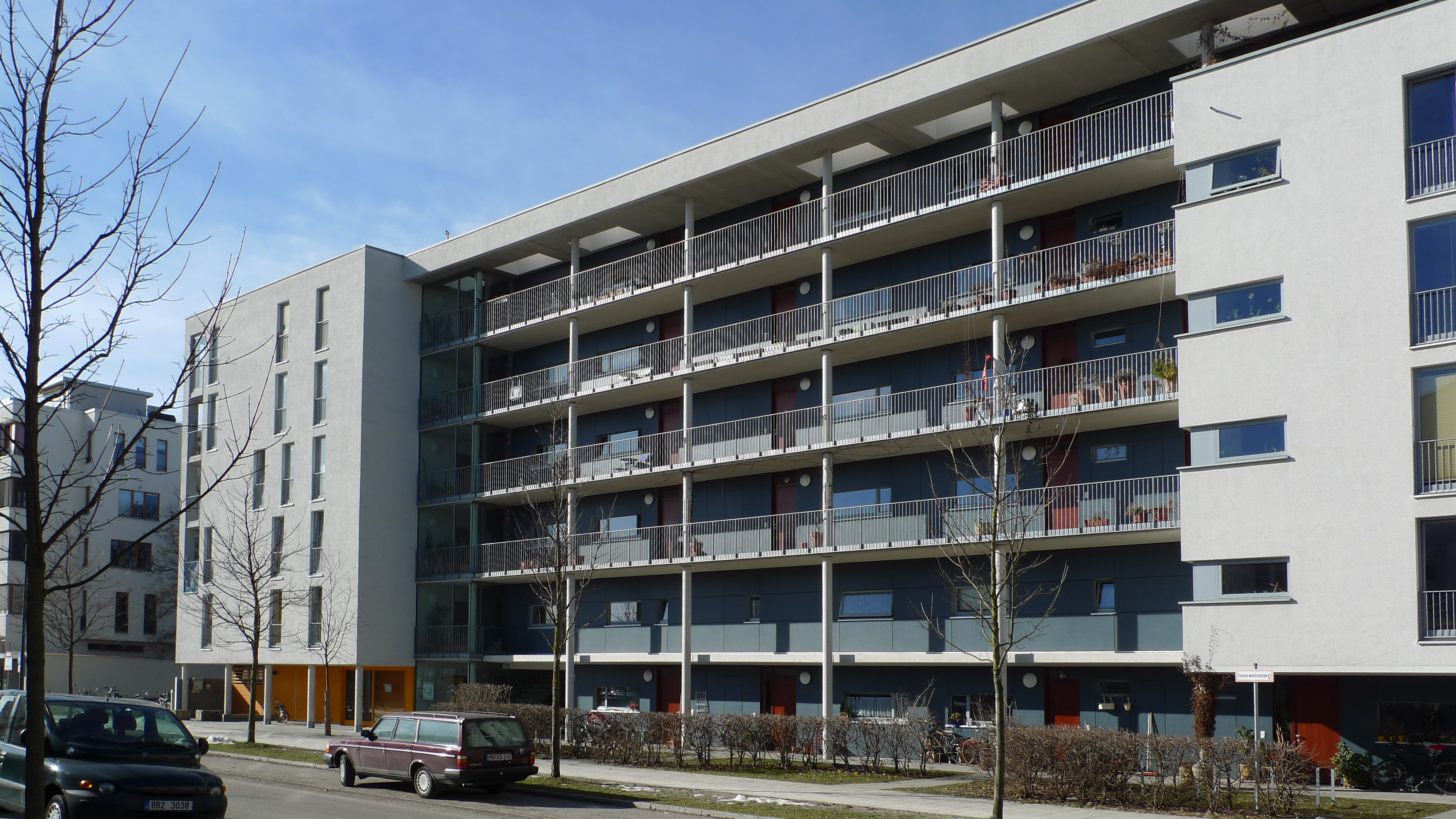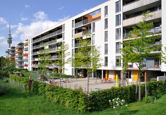Der 2. Bauabschnitt im ehemaligen Militärgelände am Ackermannbogen liegt nordwestlich zwischen der großen Wiese und der Ackermannstraße. Hier entstand auch das zweite Projekt der wagnis. Die unmittelbare Nähe zum Olympiagelände stand Pate für den Namen, den die Baugruppe dem Haus gab: Der "Olymp" ist ein lang gestreckter, 5-geschossiger Bau, 45 Wohnungen geben Raum für ca. 100 Menschen, nur wenige Gehminuten entfernt von wagnis1.