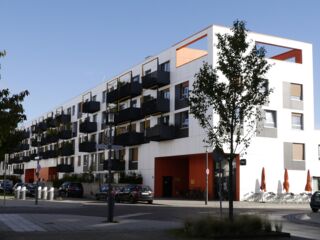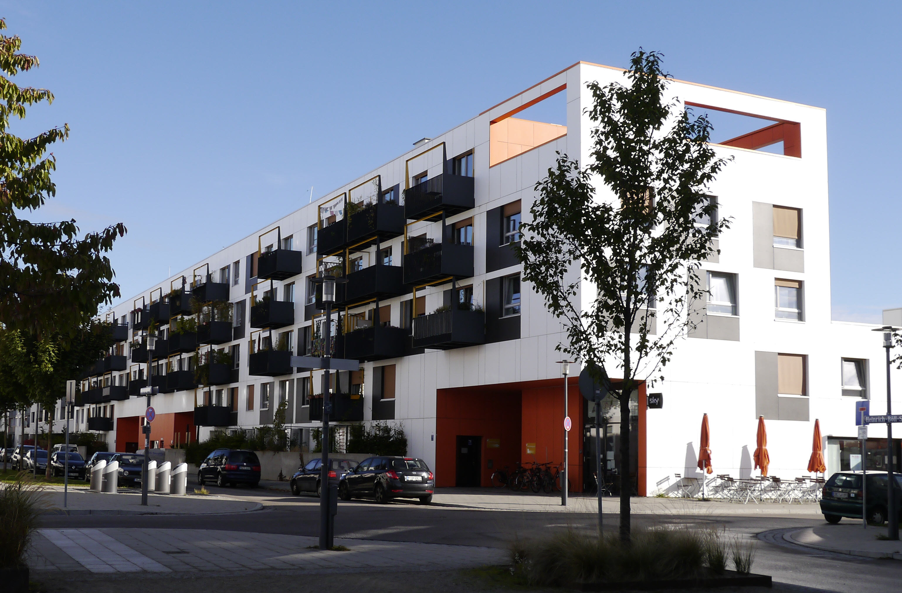 Das dritte Bauprojekt der wagnis liegt in der Messestadt Riem. Dieses Neubauviertel befindet sich im Osten der Stadt auf dem ehemaligen Flughafengelände. 2005 fand hier die Bundesgartenschau statt und legte mit ihrem weitläufigen Park den Grundstein für eine reizvolle und abwechslungsreiche Begrünung. So kommt es, dass die Bewohner*innen der Messestadt sozusagen »mitten im Park« zuhause sind. Zahlreiche Fahrrad- und Wanderwege führen direkt von hier ins Umland. Von vielen Stellen aus hat man Bergblick auf die Alpen. Offensichtliche Attraktion ist der nahegelegene Buga-See (oder auch Riemer See), ein Baggersee, der mit seinem kristallklaren Wasser im Sommer zum Baden einlädt.