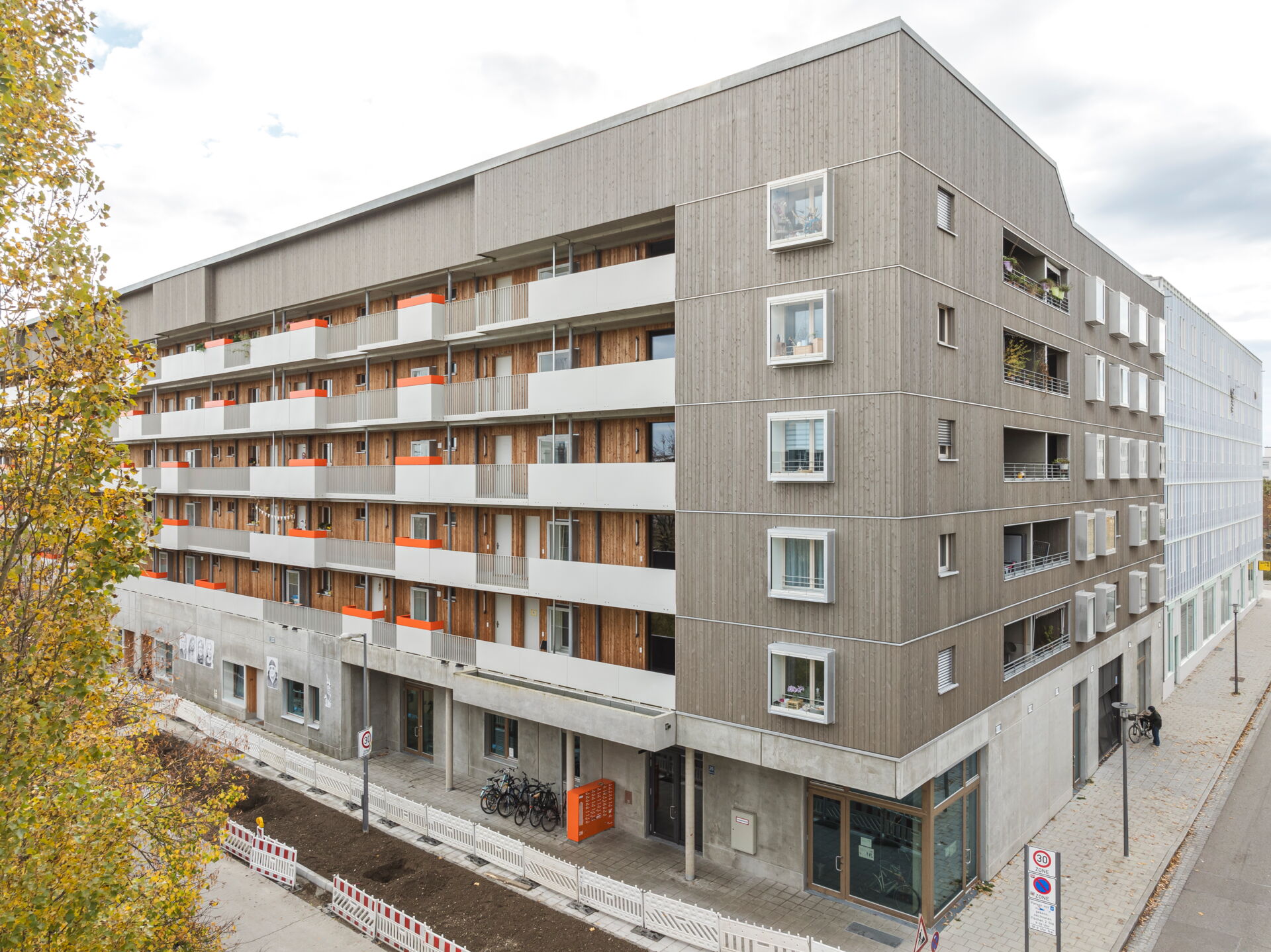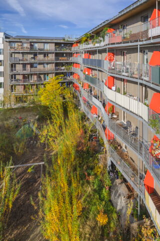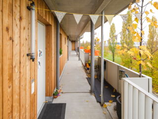 Hier sind die Wege kurz, denn die Anbindung an den ÖPNV ist optimal, die U-Bahn-Station Messestadt-Ost liegt direkt vor der Haustür und sowohl der Riemer Park samt Badesee als auch das neue Stadtteilzentrum sind ganz nah. Durch die gemeinsame Entwicklung mit WOGENO und KOOGRO haben die Bewohner*innen eine besonders vielseitige Infrastruktur zur Verfügung mit gemeinschaftlichen und gewerblichen Angeboten wie Dachgarten, Repaircafé, Veranstaltungs- und Gemeinschaftsräumen, Musikraum, Mobilitätszentrale und Ballettschule. Auch unser drittes Projekt wagnis3 an der Heinrich-Böll-Straße ist nur wenige hundert Meter entfernt.