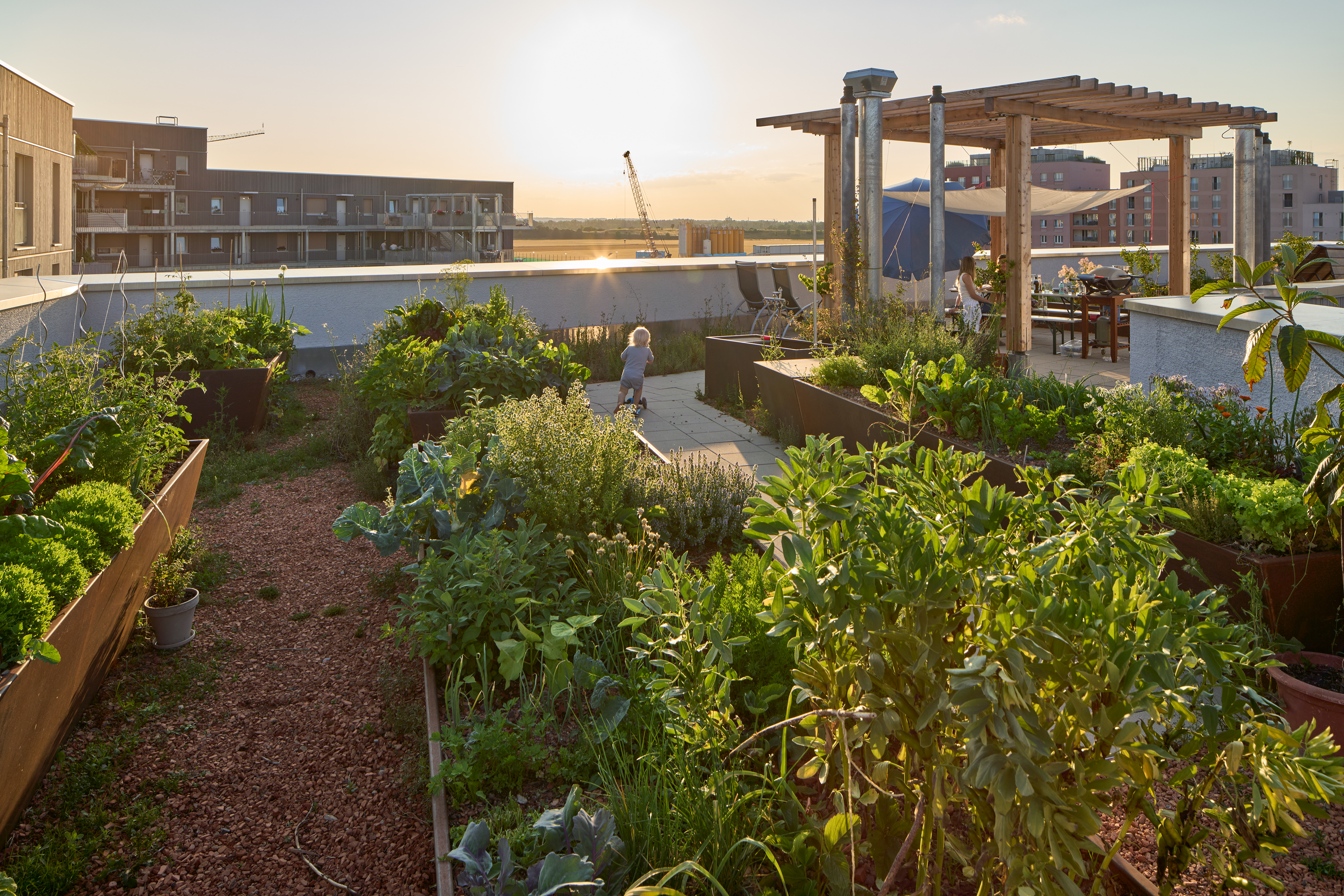 Umfang | 97 Wohnungen, sowie zahlreiche Gemeinschaftsräume wie Veranstaltungsraum, Werkstatt, Toberaum, Musikraum, Gästeapartment, Skybar, Lesegalerie, Waschcafé, außerdem Gemeinschafts-Dachgärten und Gewerberäume wie Gastronomie und Kindertreff.